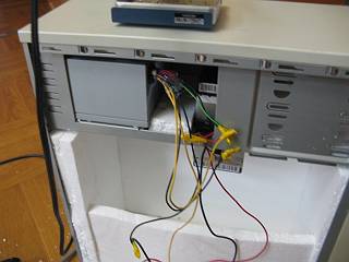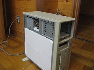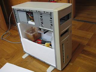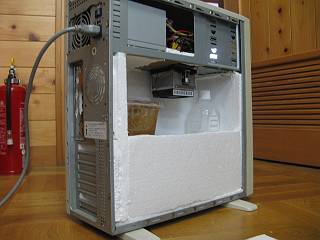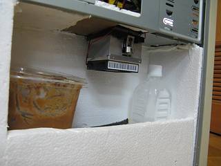 こんな形で,上の5インチベイが電源と排熱側。下側の部分を冷蔵庫とした。