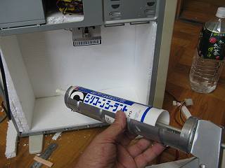 冷蔵庫部分はシリコンシーラントで隙間を埋める。