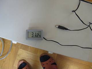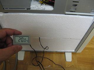それに対して,内部は20度。10度以上の差はあるけれど,これじゃあ冷蔵庫にならないなあ。