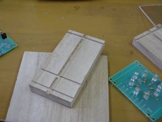 丸いタイプのLED基板は幅がそろっているので,板に溝を入れてはめ込む形にした。