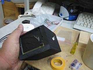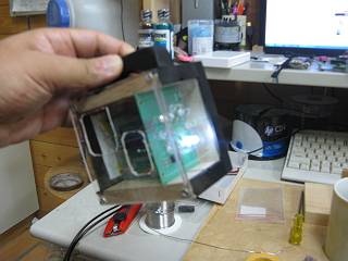 蓋はペット材でスイッチにアクセスできる穴を開け,ねじ止めした。