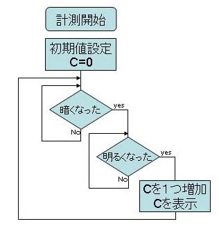 そこをものが横切ると,明るさが変化するので,何回通ったかカウントするプログラムを作った。