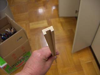 角材にかんなをかけて溝をひいてガムテープで留めてみた。