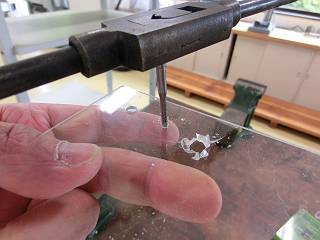 アクリル板には少し斜めに穴を開けて、タップをたてる。