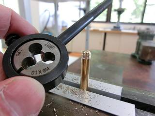 今度は6mmの真鍮棒を面取り&おねじきりをする。