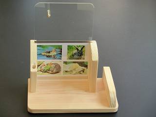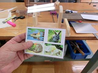 アクリル板をL版の写真に合わせて裏側にアルミ版を入れて写真スタンドにしてみた。