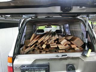 午後、材木屋さんを紹介してもらったので、早速伺い県産材の杉を手に入れてきた。