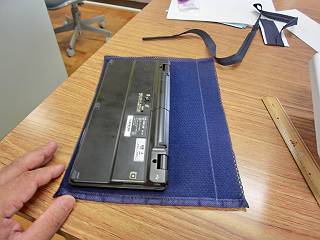 続いて、横方向も少し大きめに長さをとって、裏返してミシンで縫い付ける。