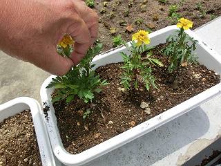 植えたのはメランポジュームとマリーゴールド。