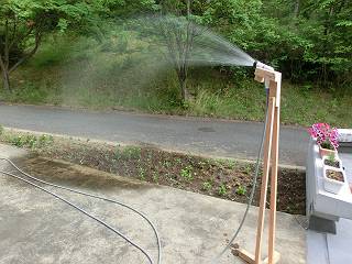 水を流すとこんな感じ。高さもあるので広範囲に撒くことができる。