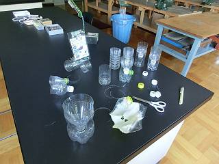 比較実験用に大きさや種類の違うペットボトルをいくつか使って作る。ついでに塗装もしてみた。