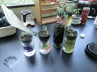 先週行われた栽培に関する講座で、講師の先生がペットボトルを使った底面潅水鉢の実験を教えてくださった。