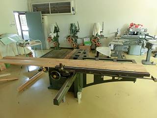 先晩作業の後、丸鋸で切断して軸の部分を作る。