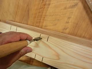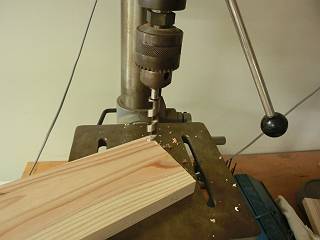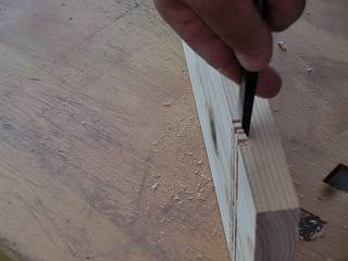 足はほぞ組で枠にするように角のみを使ってほぞ穴を開ける。