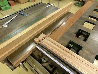 4つ分つながった状態でほぞを作り、その後で縦引きして4つに分けた。