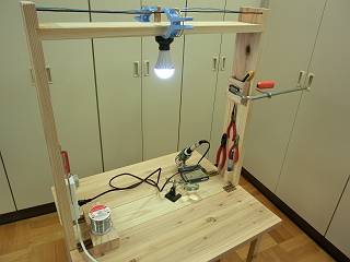講座で作成する「バタフライワークテーブル」のサンプルに,実使用状態へ近づけて興味を誘うために少し飾ってみた。