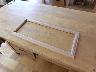 先日のテーブル製作をするのと並行して、スギ材を使って額縁を作ってみた。