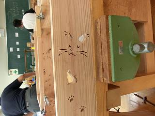 夏休みに入って、2日間講座でスギを使った機械加工の講座を行った。