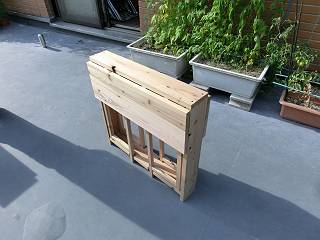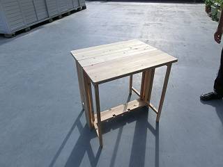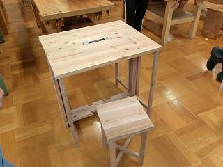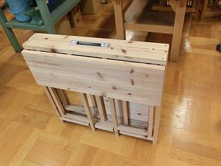 こちらは、下にたたんだのに加えて、折りたたみ椅子も製作し、下に収まるようになっている。