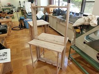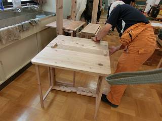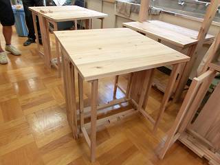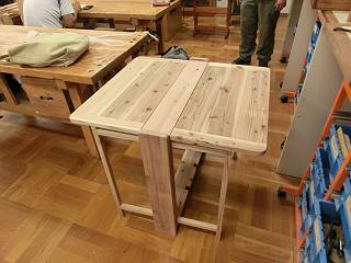 先日試作した「バタフライワークテーブル」を作ったのだけれど、それぞれの先生方のアイディアや技量に感銘を受ける2日間だった。
