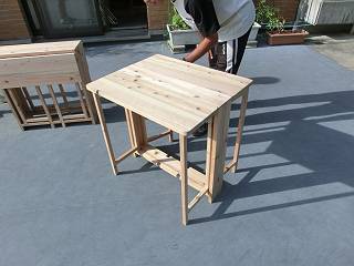 加えて、天板は3つをつないで広くしたのに加え、下にたたんでコンパクトになるようになっている。