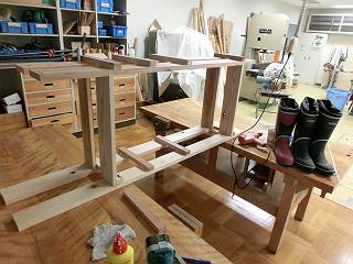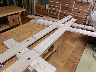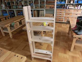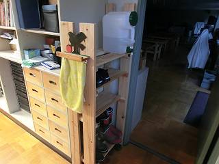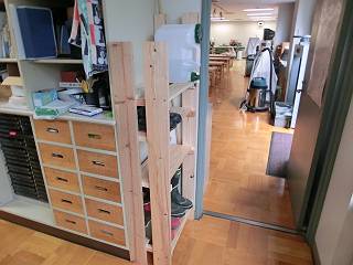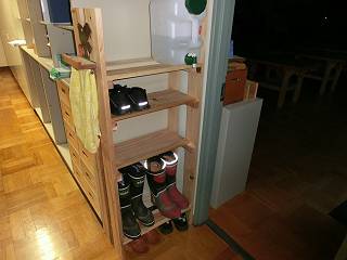 長靴なども収まるように、今までのものに比べて高さを高くした。ストックしてあった材料を使って一からつくる。