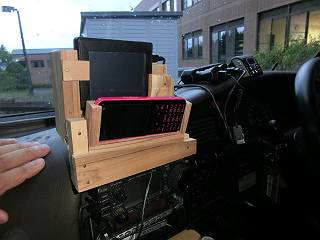 車にセットした状態。これで車に乗ったときはいつもここにセットしておける。