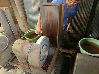 後は研ぐばかり。これも大きな水研ぎ機があるので、かなり楽。砥石もしっかり整備されている。
