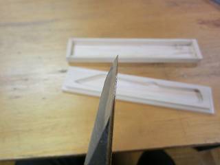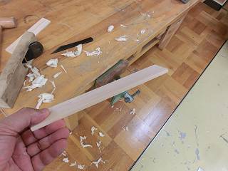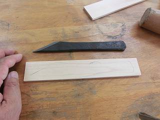 見えてきた感触というのは、「押すときに砥石に吸い付けるような感じで前に出す」というもの。切り出しもかんな刃も、(それほど)丸っ刃にならずに刃がえりが出た。それでもこうやって写真で見るとラインがでていないから御粗末だなぁ。そんなに簡単にいくわけもなく、ここにいる間に経験を積みたいと思う。