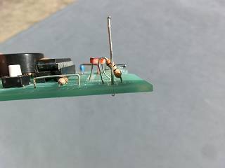 赤外線センサーを付けていたアナログポートに、プルアップ用の抵抗とタッチするための電極(リードの切れ端)をはんだづけする。