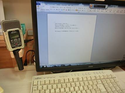 マイクと逆側は大型ピンチを後ろの板に固定してそこに挟み込む。結局windows7音声認識を使うよりも、自分でキーボード入力した方がストレスがたまらないことがわかった。