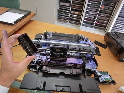 現在使っているMP500(友人にいただいたもの)も同じインクを使っているので、インクタンクに加えてプリントヘッドも使えるかとおもって取り外す。