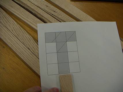 すべて25mm幅を基本として、花子で設計図を書いて実物大の型紙を作って作業を進める。