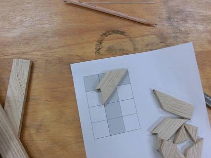 一カ所だけ、複雑な形なのでちゃんとのこぎりで切り取る。1年生で扱うにはちょっと難しいか・・・・・・