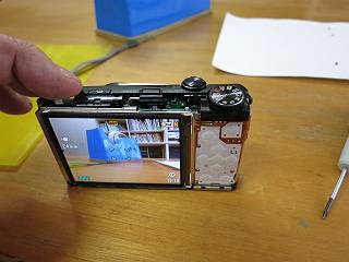 このごろ、画面に黒いシミが出るようになってしまった。撮影した写真にも写っているのでCCD(cmos?)に埃が直接着いたのだろうと思って修理に出した。