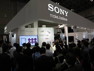 ちょうどこの日に発表となったソニーの新しいe-inkのリーダー。黒山の人だかり。
