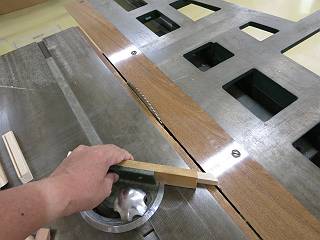 きちんと45°が出ていないと隙間ができるので、捨てる木ぎれを切って確かめる。(まあ、これはどんなときもやるべき)