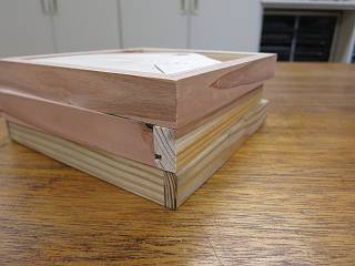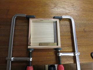 こちらも接着面は心許ないが、底の板でしっかり接着できる。まあ、木工ボンドは結構しっかり接着力があるのでありがたい。