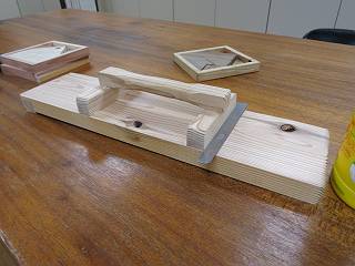 続いて、手押しかんな用の押しジグを製作。これは講座中に時間ができず部品だけ私が加工して持ち帰ってもらった。