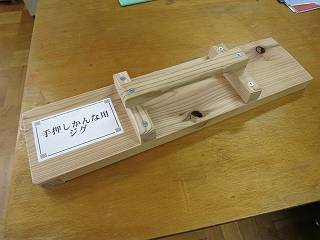 こんな感じで完成。今回聞いてみたら、学校には手押しかんな盤はあっても、このジグは無かったようなので