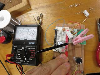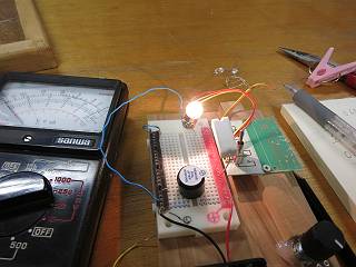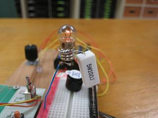 これで、豆電球とLEDの比較ができる。この状態だとLEDの方が明るく点灯しているが・・・・