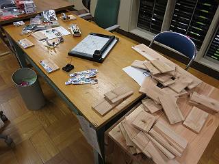 今回は10個を一つの箱に入れることにして、3箱作る。重ねたときにずれないように上下に溝をつけた。