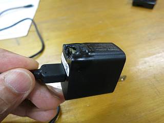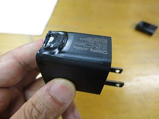ACアダプタ(5vのコンバータ)が溶けて穴が開いていた。