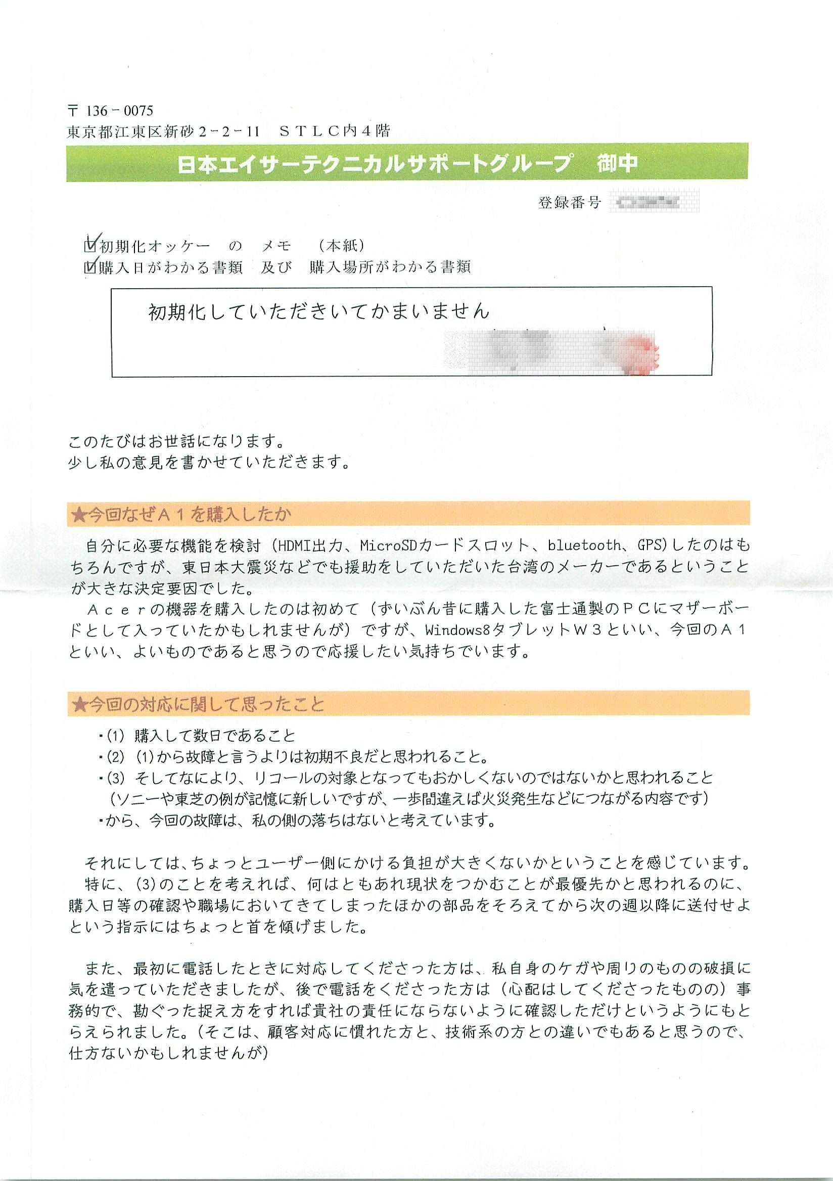さすがに,日本のメーカーのような対応は無理なのかな。まあ,安いものだし・・・・