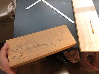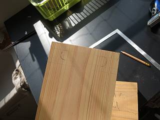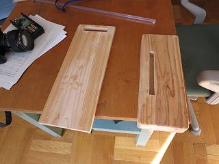 以前材木屋へ伺ったときに,積み上げてあった端材からもらってきた材料を利用。足はスギ,柱はヒノキ。