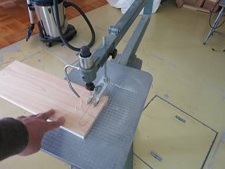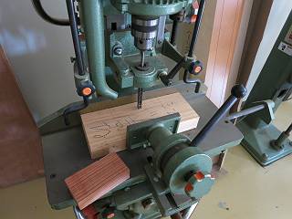 時計があまり暴れないように,すこし幅が広い板を使って,丈夫には取っ手の穴を開ける。