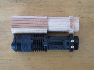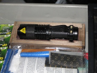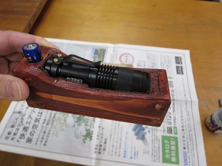 お世話になったお礼をなにかと考える中で,現場で夜の巡回などもあることは確実なので明るいLEDライトをプレゼントしようと考えた。どうせなら,木材を加工していつもの置き場所を作るのがスマートだろう。