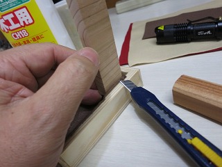 スギ材のあまりで,枠を作る。予備の単3電池をいれておく部分も考えてみた。