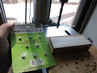 裏側には穴を開けて,マグネットを埋め込む。引き出しに入れたとき位置がずれないようにするため。