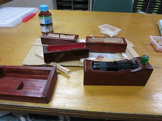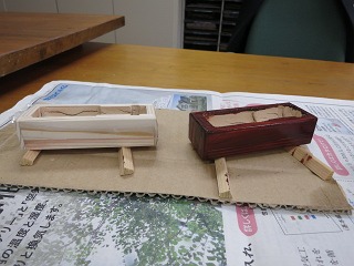 しかし,木目はスギの方が綺麗なので,もう一度スギで作るつもり。なかなか最終形にはたどり着かない。
